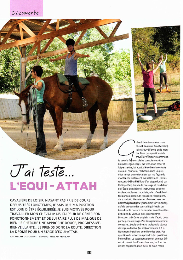 La journaliste Mélanie Courtois et la photographe Myriam Moreau, toutes deux travaillant pour le Magazine Cavalière – La Passion du Cheval, sont venue participer pendant 3 jours, à un stage de posture Equi-Attah (ou « yoga à cheval »).